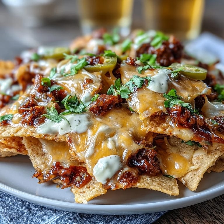 The secret to truly memorable nachos lies in the details: sturdy chips that won't wilt under the weight of toppings, perfectly seasoned beef with warm spices, and a velvety cheese sauce made from scratch. This recipe combines sharp cheddar and Monterey Jack for a balanced, melty sauce that clings to every chip. Fresh jalapeños add tangy heat, while cool sour cream and bright cilantro provide the perfect finishing touches. It's a symphony of textures and tastes that transforms simple ingredients into an unforgettable appetizer.
