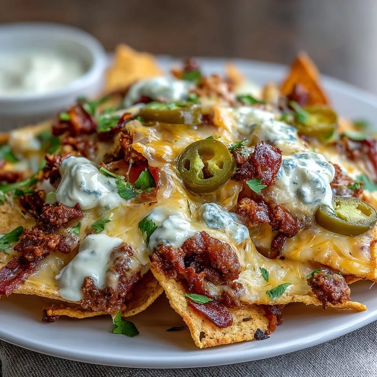 For the best results, choose thick, restaurant-style tortilla chips that can support heavy toppings without breaking. When making the cheese sauce, add the milk slowly while whisking constantly to prevent lumps. If the sauce becomes too thick, thin it with a splash of milk. Keep the cheese sauce warm over very low heat or in a double boiler if you're not using it immediately. To prevent soggy nachos, serve them right out of the oven and avoid overloading any single chip—spreading toppings evenly ensures every bite is perfect.