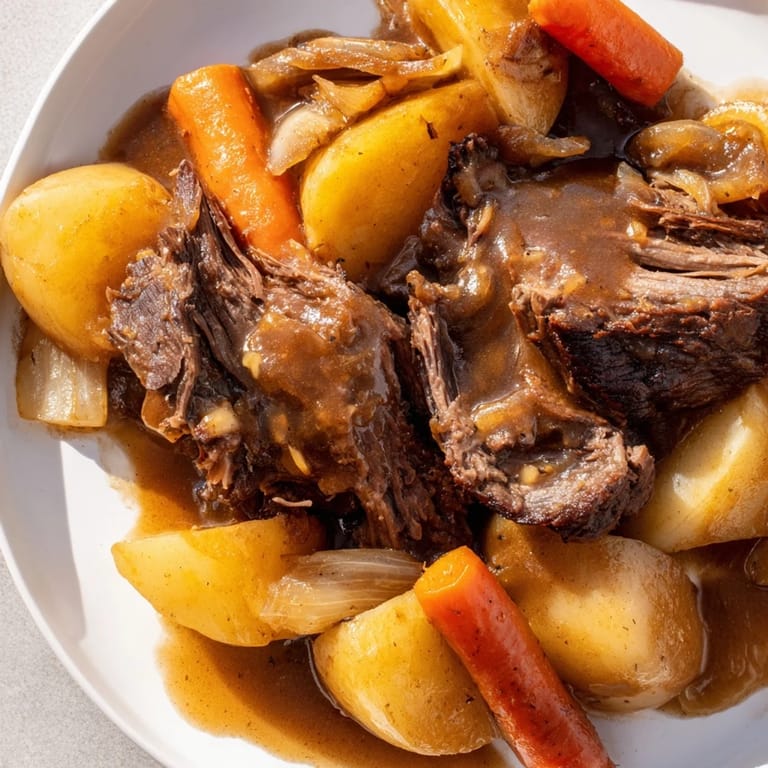 This recipe is a skeleton that welcomes additions and swaps. Some cooks swear by parsnips tucked in alongside the carrots, or celery added for earthiness. You can substitute beef with lamb for a completely different character, or add a splash of red wine vinegar at the very end for brightness. The beauty of pot roast is that it's forgiving enough to incorporate what you have on hand or what sounds good to you on a particular afternoon.