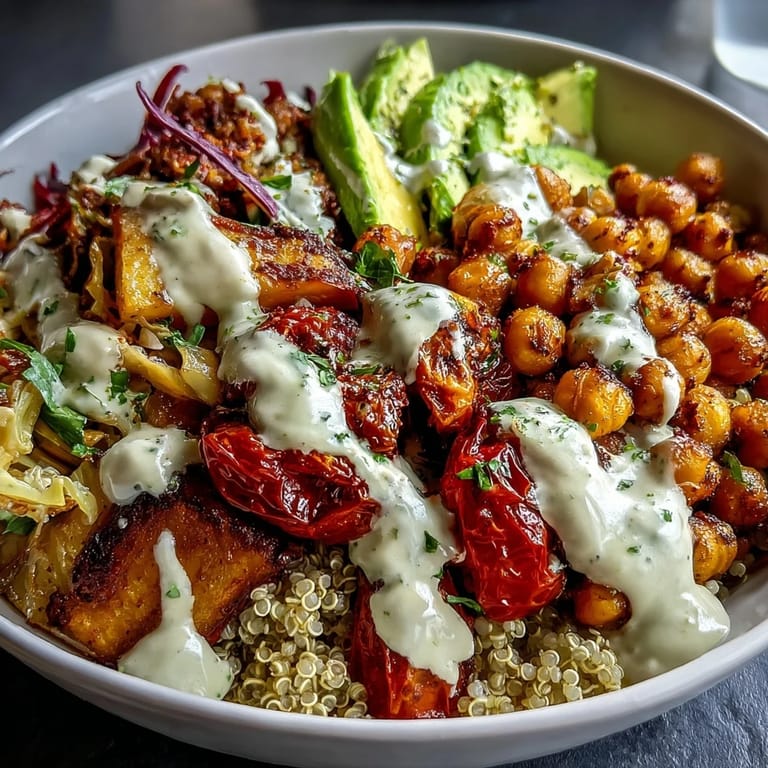 Once you've made this bowl once, you'll start seeing it as a template rather than a strict recipe. I've swapped the quinoa for brown rice on weeks when I had that in the pantry, added roasted broccoli when I wanted extra greenness, and topped it with everything from toasted sunflower seeds to crumbled feta when I'm not being strict about vegan options. The dressing is so versatile that I've started doubling it and keeping extra in the fridge as a sauce for grains and roasted vegetables throughout the week.