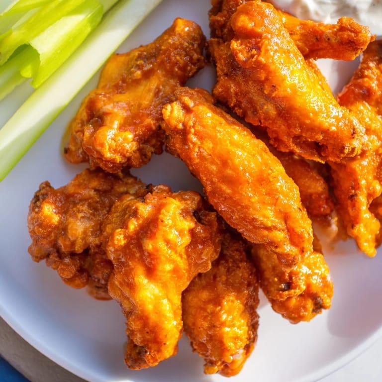 Pin It Buffalo wings showed up at my kitchen counter one game day when a friend texted asking if I could whip something up. I'd never deep-fried anything before, but there was something thrilling about that sizzle, that exact moment when raw chicken hit hot oil and the whole room filled with warmth. Turns out, the secret wasn't technique or fancy equipment—it was knowing when to stop fiddling and just let them get golden. Now whenever I make these, that same nervous excitement creeps in, right before the payoff.