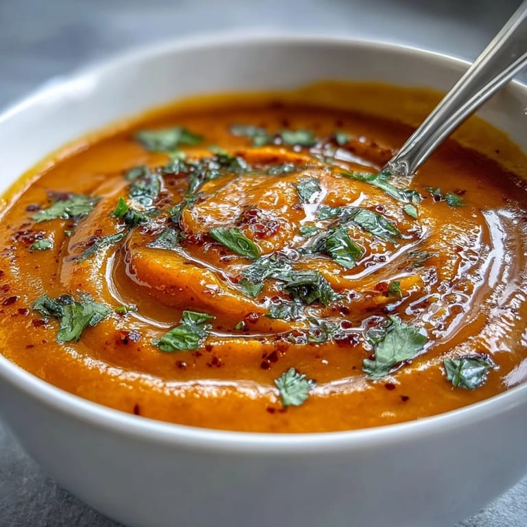 - Ladle the soup into bowls and top with a scatter of fresh herbs and a drizzle of coconut cream or yogurt if you're using it. The contrast of cool cream against warm soup is worth the extra step.