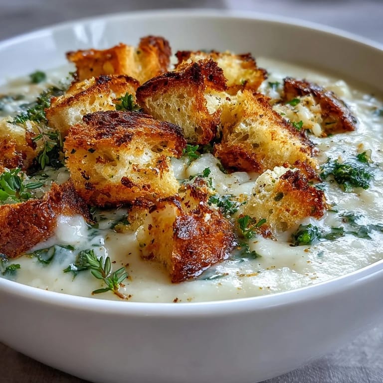 I made this for a friend who'd just moved into a new apartment with barely any furniture. We sat on the floor with mismatched bowls, dipping the croutons into the creamy soup, and she told me it was the first meal that made the place feel like home. That moment stuck with me—how food can do that, how it can fill more than just your stomach.