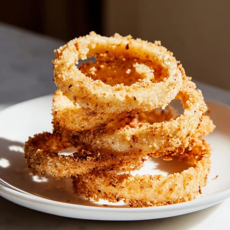 Pin It There's something about the smell of onions hitting hot oil that just stops me mid-conversation. My uncle used to make onion rings every Fourth of July, and I'd hover near the kitchen like a curious cat, watching the golden transformation happen in seconds. The first time I tried making them myself, I used warm water instead of cold and ended up with a greasy mess—but that failure taught me everything. Now these rings are my go-to when I want something crispy and comforting that actually works.