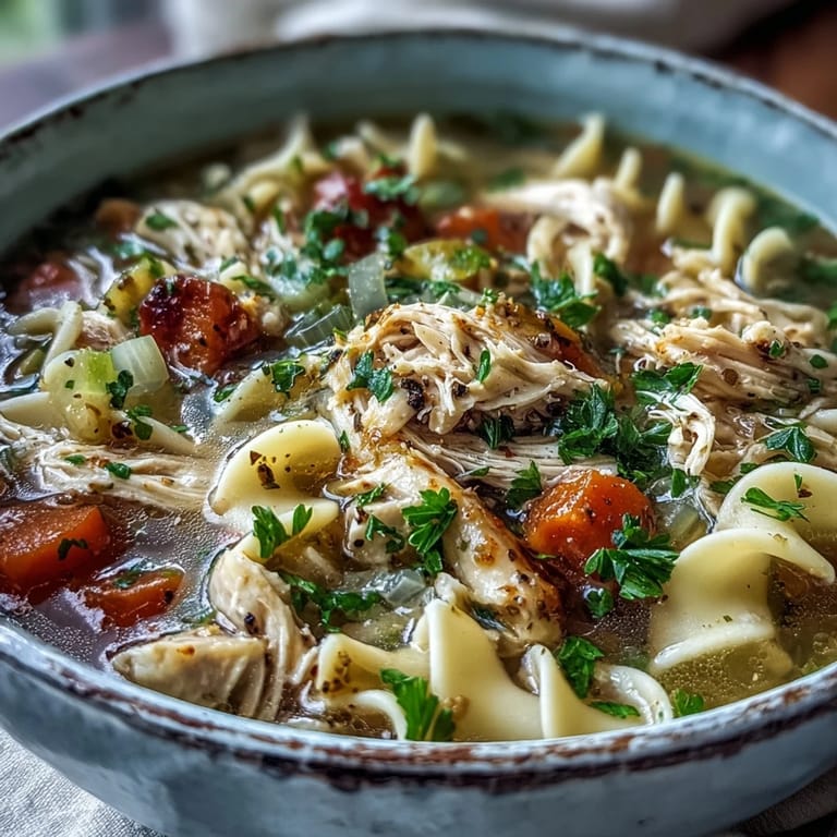 I remember making this for a neighbor who was feeling under the weather and the smell of the thyme filled the whole hallway. It felt like I was handing over a warm hug in a ceramic bowl. We stood by the door talking while the steam rose from the container and clouded my glasses. Even though it was a simple gesture the soup made the house feel cared for. There is something about chicken broth that just makes people open up.