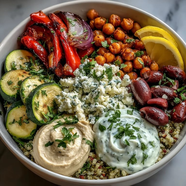 The beauty of a Buddha bowl is that it's a framework, not a formula—you can rearrange the toppings based on what you're craving or what you have. Some days I want more hummus, other days I go heavier on the feta and lighter on the yogurt. The foundation of roasted vegetables and quinoa stays consistent, but everything else is negotiable. Think of it as a template you're allowed to improvise within, which makes it equally suited for meal prep and spontaneous dinner assembly.