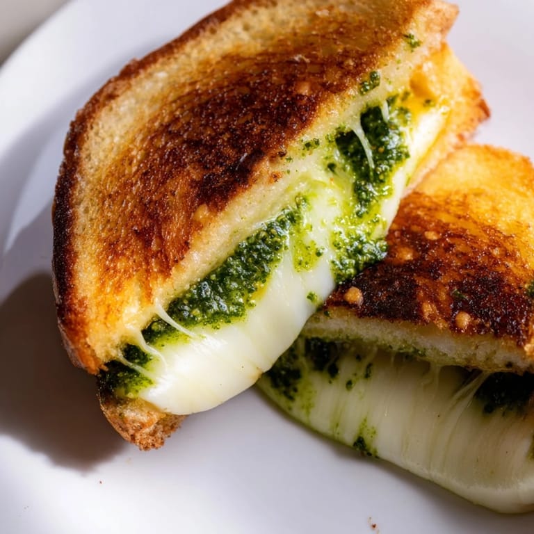 Pin It A rich and flavorful twist on the classic grilled cheese, featuring thick slices of sourdough bread layered with aromatic basil pesto and a blend of melty cheeses, grilled to golden perfection. This Italian-inspired sandwich is the perfect easy vegetarian meal for any time of day.